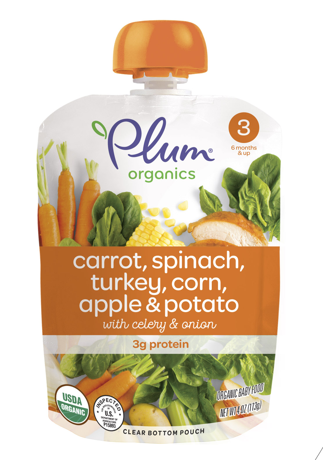 Plum Organics Stage 3 Organic Baby Food Carrot Spinach Turkey Corn Apple Potato 4oz Pouch Pack Of 6