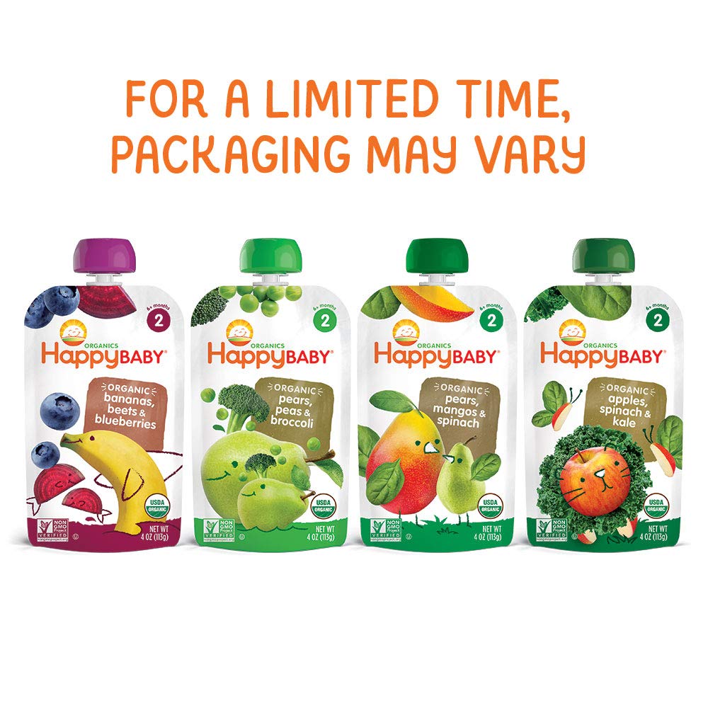 Happy Baby Organic Stage 2 Baby Food Simple Combos Spinach Mango Pear Resealable Baby Food Pouches Fruit Veggie Puree Organic Non Gmo Gluten