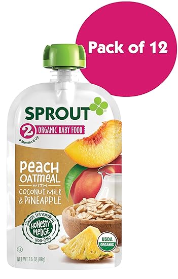 Sprout Organic Stage 2 Baby Food Pouches Peach Oatmeal W Coconut Milk Pineapple 3 5 Ounce Pack Of 12