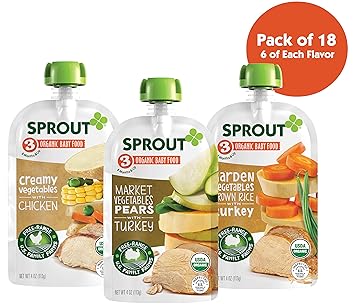 Sprout Organic Stage 3 Baby Food Pouches Meat Variety 4 Ounce Pack Of 18 6 Of Each Creamy Veg W