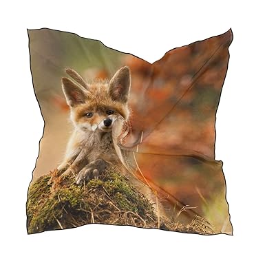 Imitated Silk Neck Scarf Cute Baby Fox Nature Animal Women S